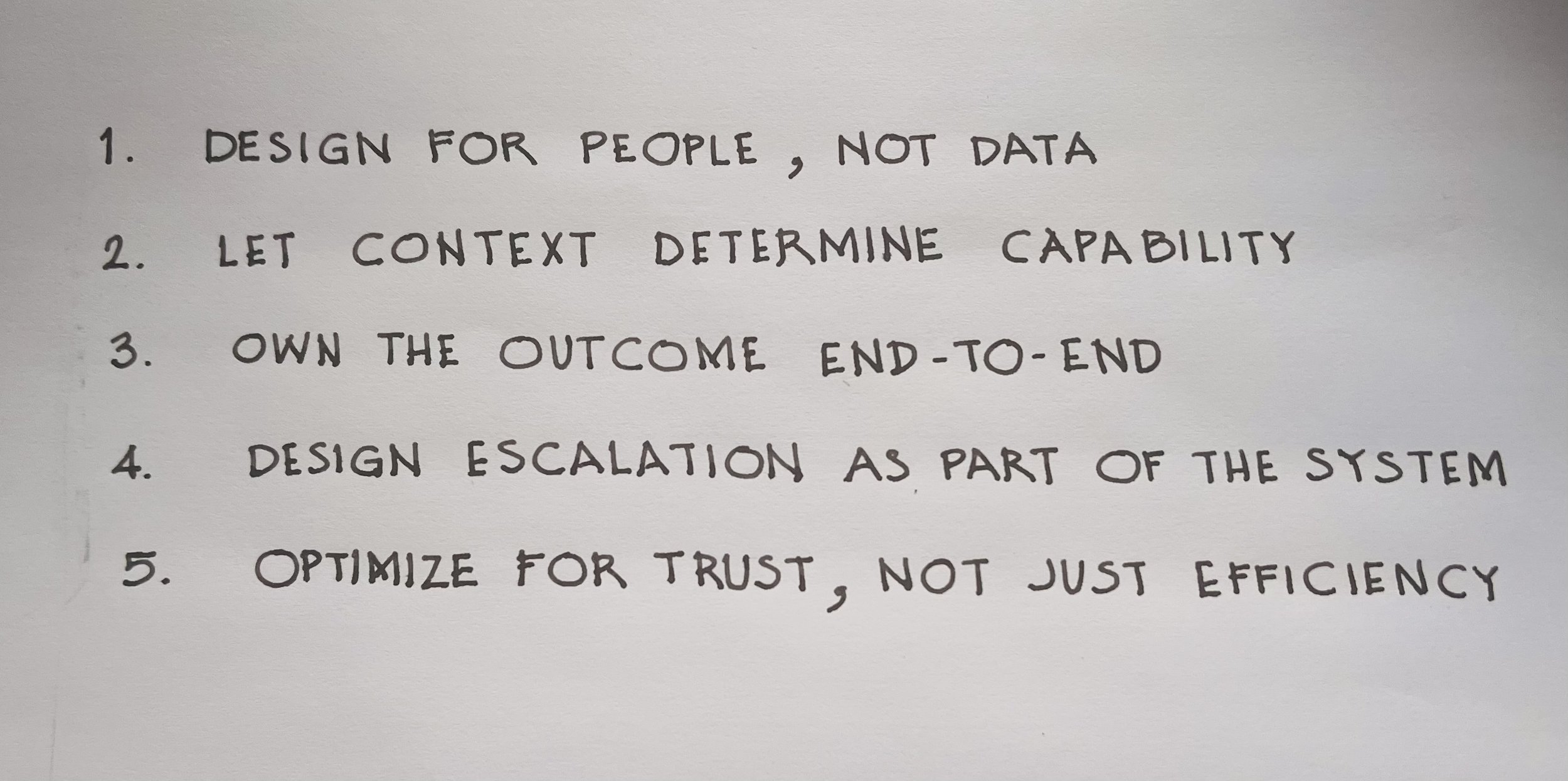 IN BRIEFMost AI systems are built around what they can do. Fewer are built around how they behave when capability is not enough — in the moments of ambiguity, incomplete context, and real human stakes that define how people actually experience them. This piece works through five design constraints for building systems that hold up under those conditions. Each one comes with the questions to test it against the work already in progress. The goal is not a better framework. It is a better decision — before something ships that shouldn't.
