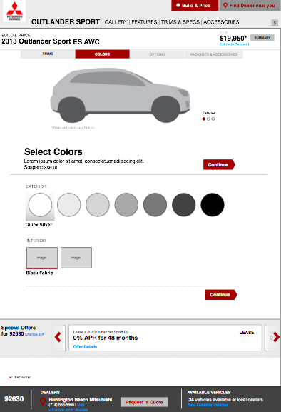 I led the UX team on the vision and design for the responsive site, developed during the recent redesign of the MitsubshiCars.com website (launched in January 2014). In addition, I was a key member of the Leadership Steering Committee who met with the Mitsubishi Executive Team, comprised of C-level executives on a monthly basis to report progress and recommend initiatives to drive business goals.